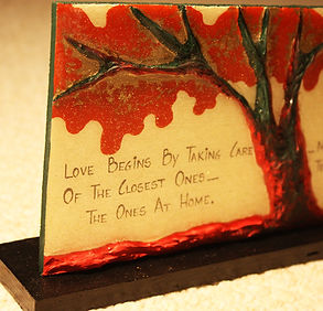 Description - These handmade table art pieces come in various colors & designs. Painted & laminated with a glittering effect, can be wiped with tissue (only on laminated area). Quotes can be changed as per order.